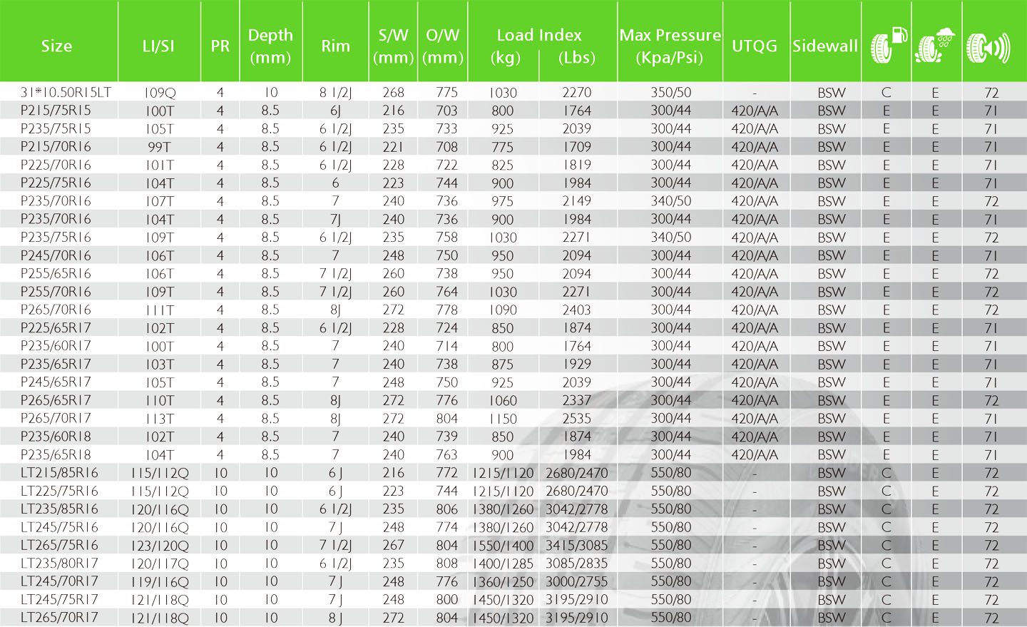 Optimized groove design. Unique pattern design with changeable width provide strong grip on muddy roads and ensure the traffic ability under bad road condition.